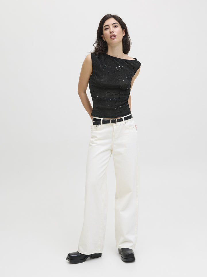 JXHOLLY ASYM TOP - GLITTER ZWART