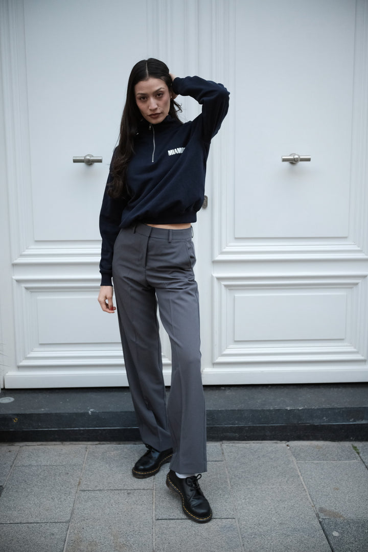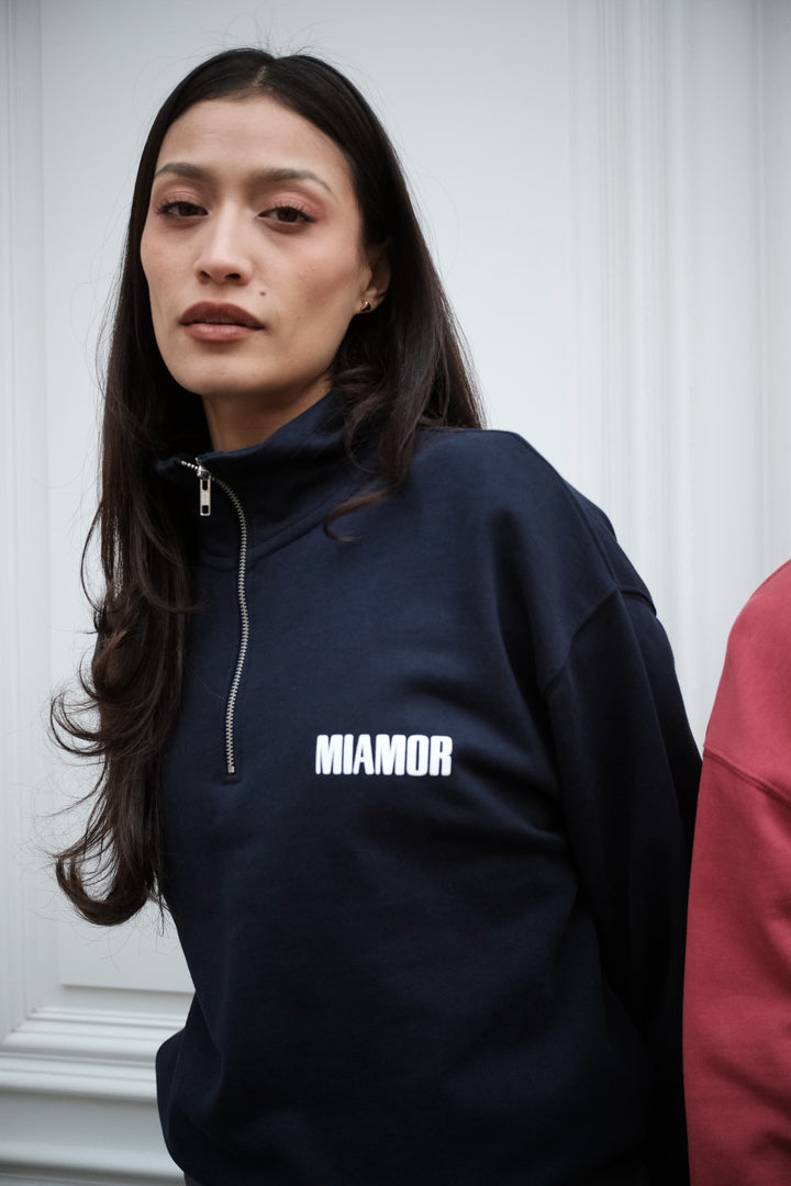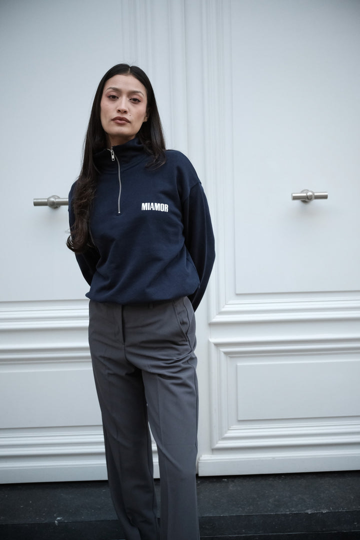 Miamor sweater met halve rits - marineblauw